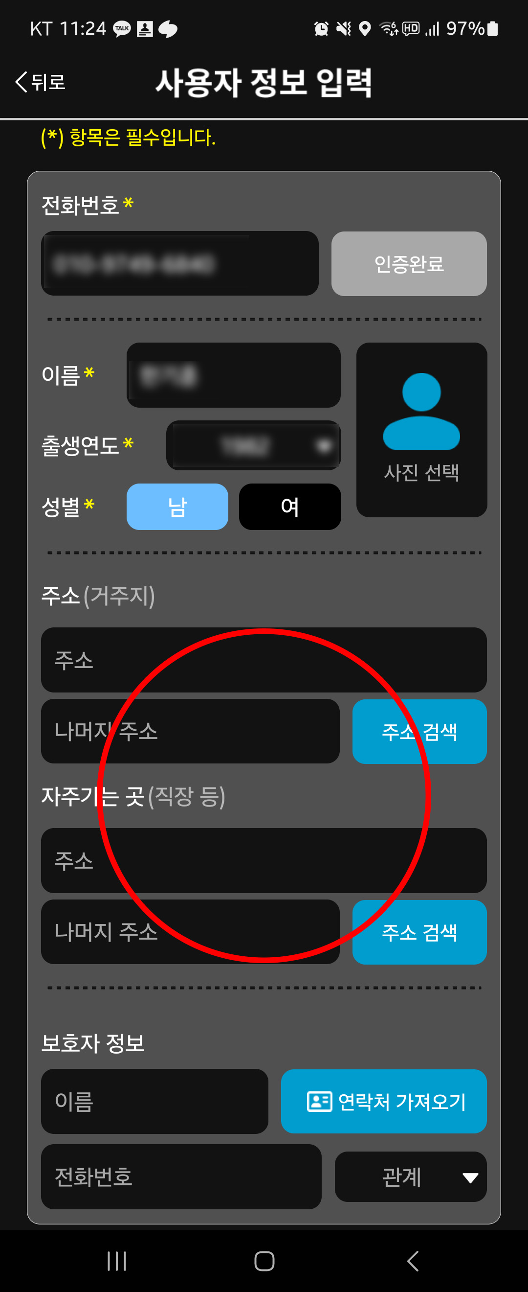 앱을 설치했다면, 반드시 먼저 ‘사용자 정보’를 정확하게 입력해두어야 합니다.