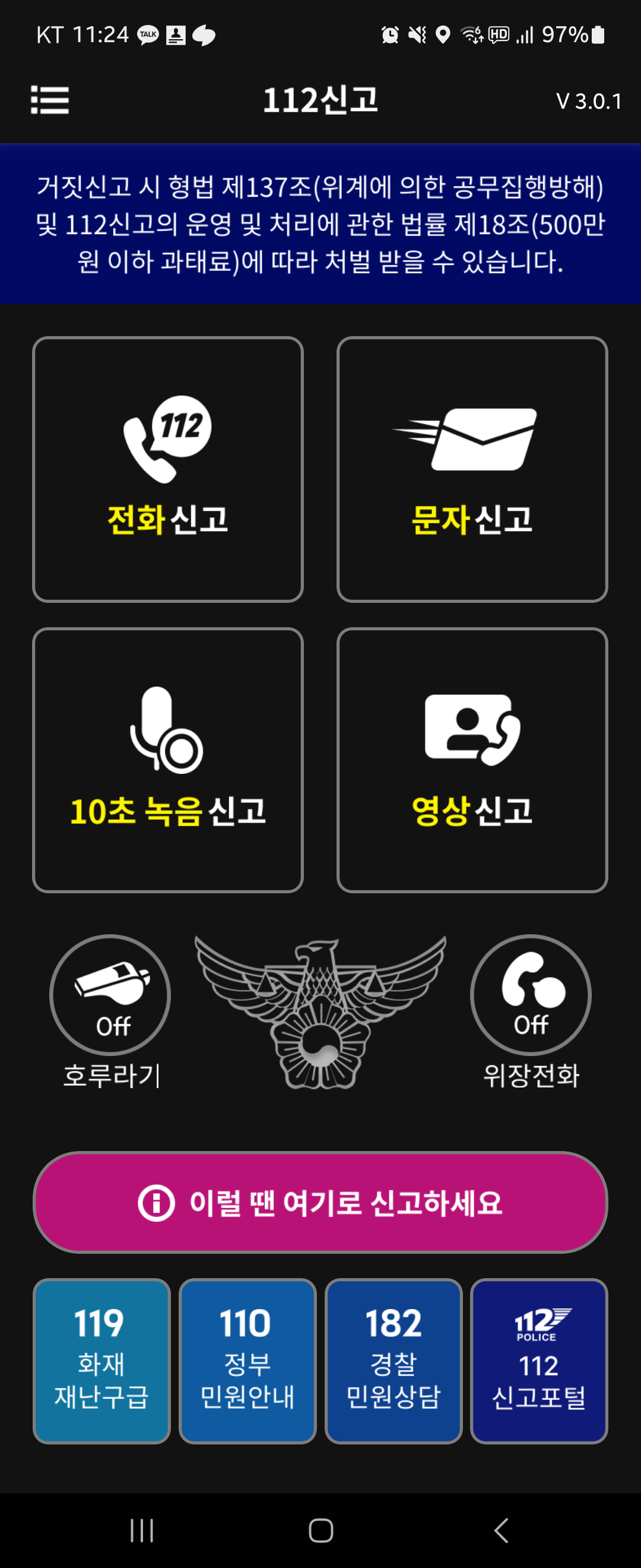 💡 호루라기부터 위장 전화까지! 당신의 안전 지킴이 '112신고' 앱